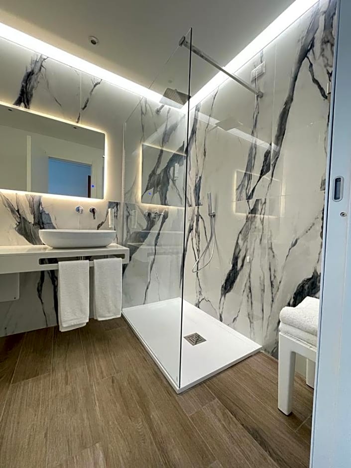 Guests will have a special experience as this suite provides a pool with a view, a hot tub and a spa bath. This suite is consisted of of 1 living room, 1 separate bedroom and 1 bathroom with a walk-in shower and free toiletries. The air-conditioned suite offers a flat-screen TV with satellite channels, soundproof walls, a mini-bar, a tea and coffee maker as well as sea views. The unit offers 3 beds.